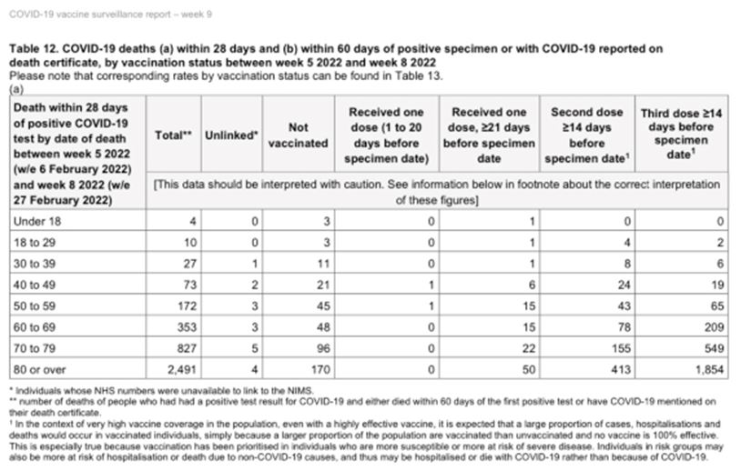 2月27日までの4週間で、ワクチン未接種の英国人がCovidで死亡したのは397人であったのに対し、ワクチン接種者は3,512人であった。Covid感染とは無関係の偶発的な死亡をより多く含むと思われる、より広い定義を用いると、その数字はさらに悪くなり、ワクチン未接種者が570人であるのに対し、ワクチン接種者は5,871人が死亡しているのです。(米国はこのデータを公表しておらず、米国の公衆衛生当局が包括的に収集しているかどうかも定かでない)